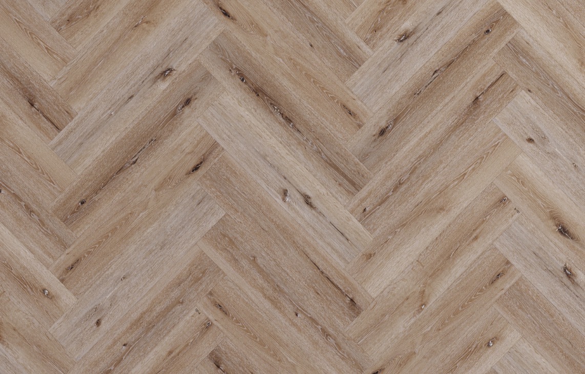 Naked Oak Herringbone Built-in Underlay. 610mm x 126mm x 5mm